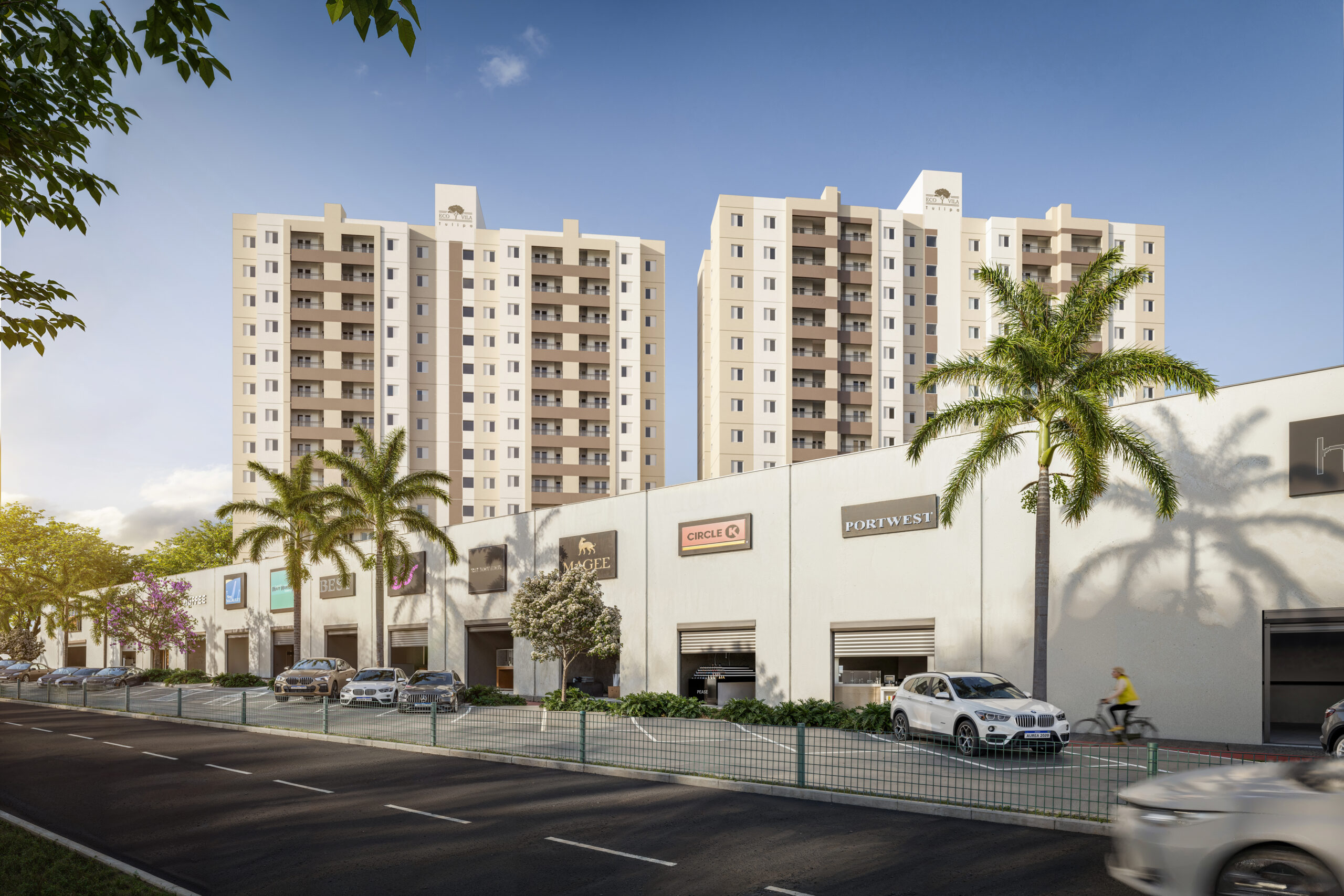Comodidade à sua porta: O empreendimento conta com 13 lojas comerciais exclusivas de frente para a Avenida Olívio Franceschini.